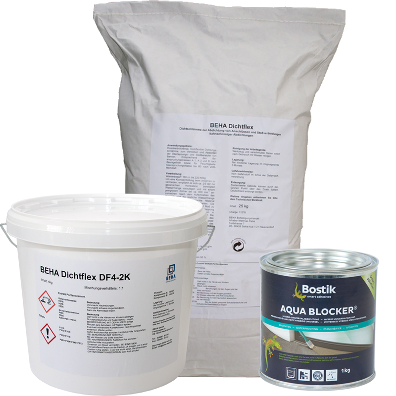 Hier in unseren Onlineshop bieten wir Ihnen verschiedene Produkte zum Abdichten unter keramischen Belägen, als Betonoberflächenschutz und Bauwerksabdichtung im Innenbereich und Außenbereich. BEHA Dichtschlämme / Dichtflex zum Abdichten unter Keramikbelägen, speziel für die Abdichtung an Wand und Boden in Duschen und Nassräumen.