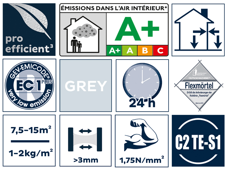 Ardaflex Ultimate übertrifft die Anforderungen nach DIN EN 12004-C2TE, DIN EN 12002-S1 sowie die der Richtlinie „Flexmörtel“. Ardaflex Ultimate ist chromatarm gemäß EU-VO 1907/2006 (REACH) sowie sehr emissionsarm nach GEV-Emicode EC1R PLUS.